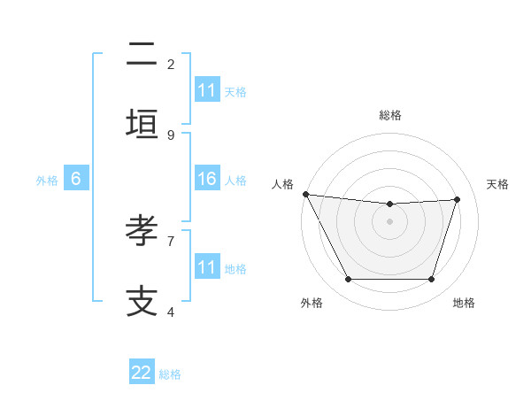 二垣 孝支さんの天格は11画の4点!
