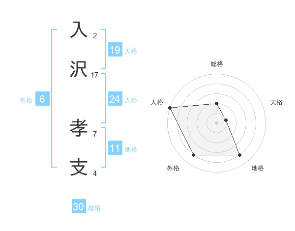 入沢 孝支さんを姓名の画数から五運を鑑定