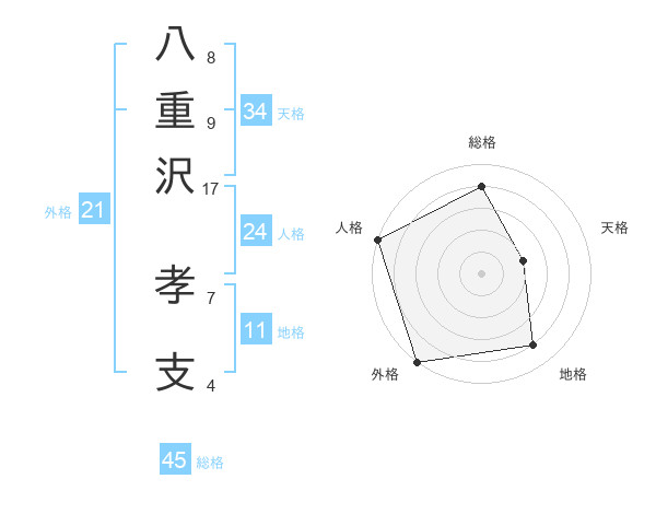 八重沢 孝支さんの総格は45画の4点!