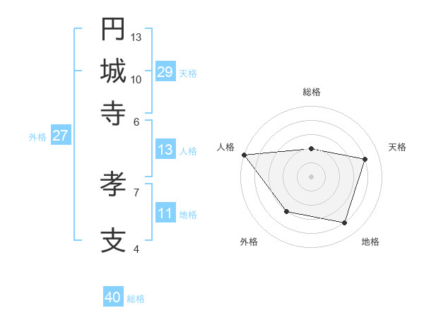 円城寺 孝支さんの天格は29画の4点!