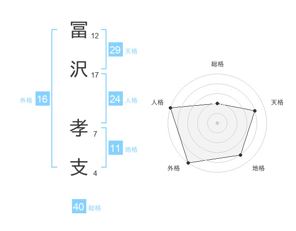 冨沢 孝支さんの天格は29画の4点!