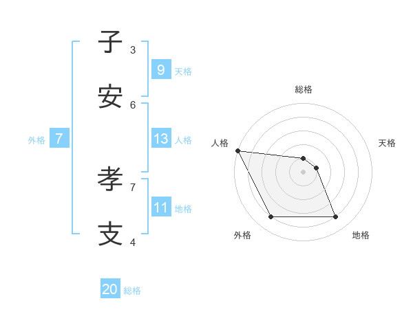 子安 孝支さんの総格は20画の1点!