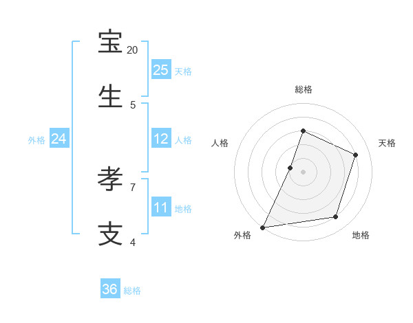 宝生 孝支さんを姓名の画数から五運を鑑定