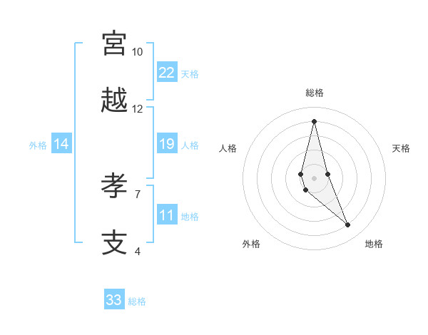 宮越 孝支さんの総格は33画の4点!