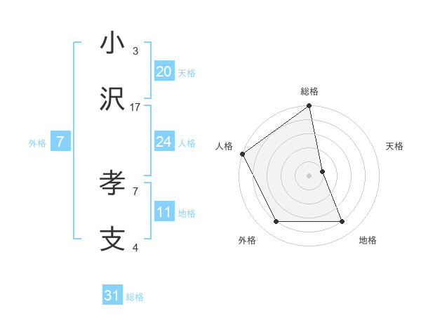 小沢 孝支さんの総格は31画の5点!