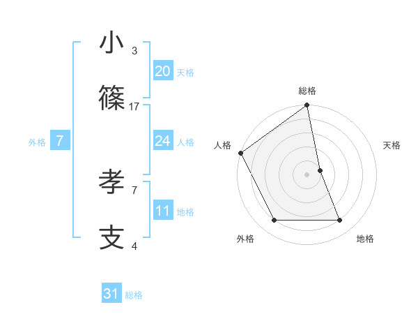 小篠 孝支さんを姓名の画数から五運を鑑定