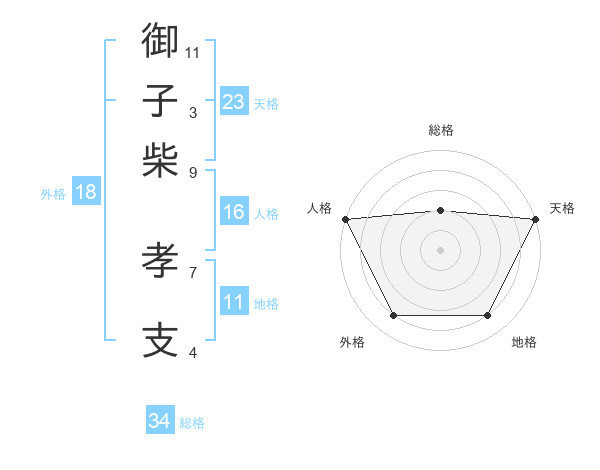 御子柴 孝支さんの天格は23画の5点!