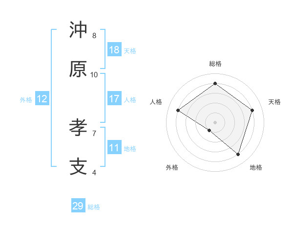 沖原 孝支さんを姓名の画数から五運を鑑定