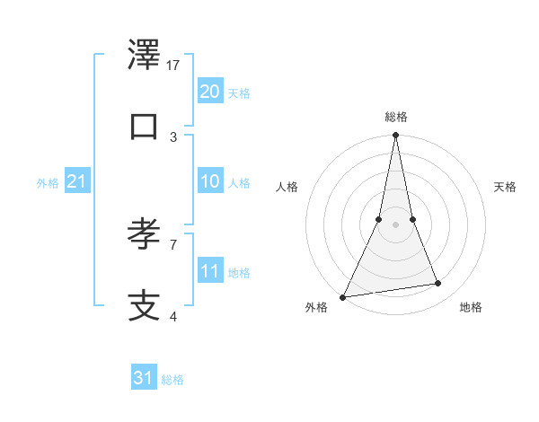 澤口 孝支さんを姓名の画数から五運を鑑定