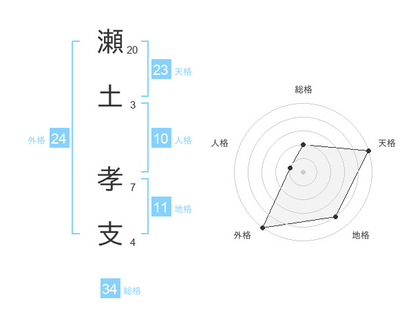 瀬土 孝支さんの総格は34画の2点!