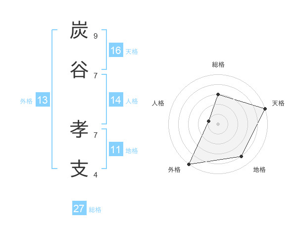 炭谷 孝支さんを姓名の画数から五運を鑑定