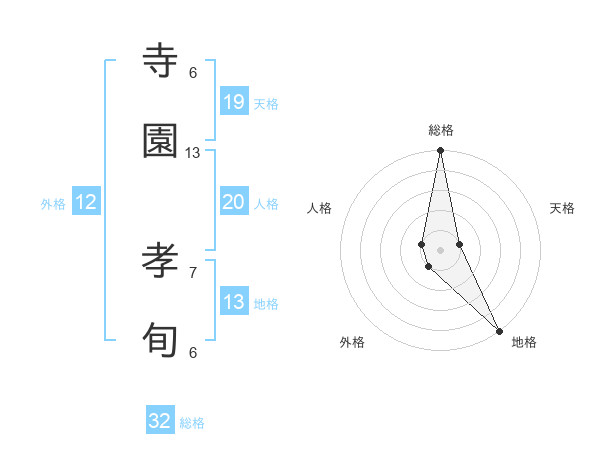 寺園 孝旬さんの総格は32画の5点!