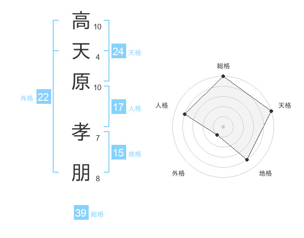 高天原 孝朋さんの天格は24画の5点!