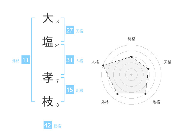 大塩 孝枝さんを姓名の画数から五運を鑑定