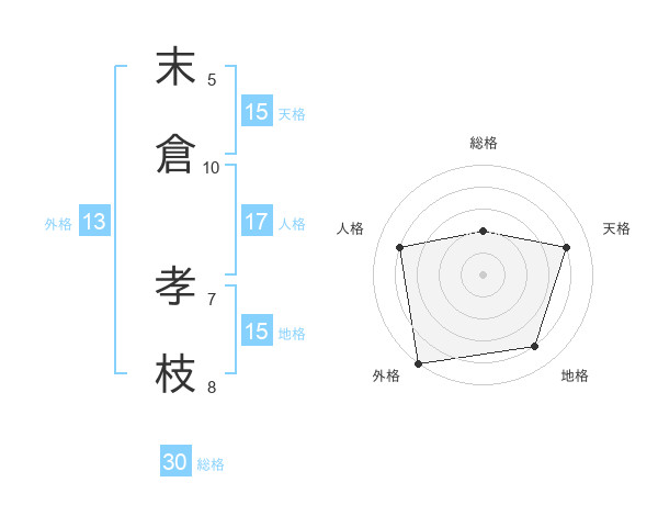 末倉 孝枝さんを姓名の画数から五運を鑑定