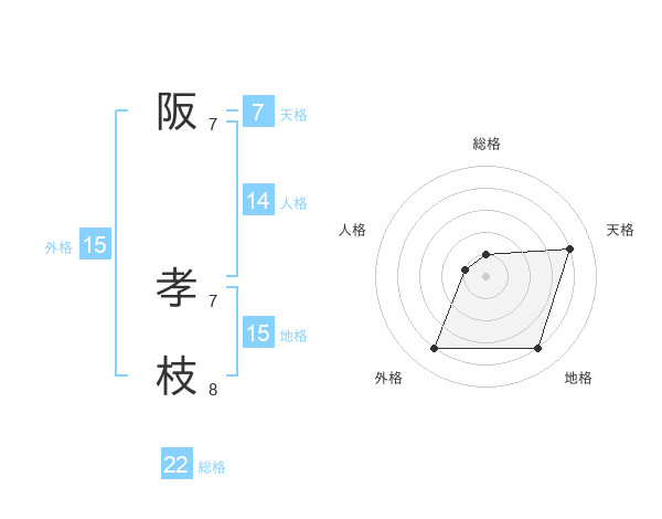 阪 孝枝さんを姓名の画数から五運を鑑定
