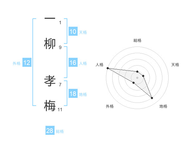 一柳 孝梅さんの総格は28画の1点!