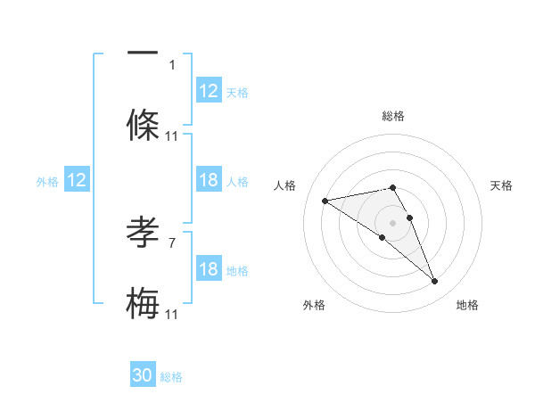 一條 孝梅さんを姓名の画数から五運を鑑定