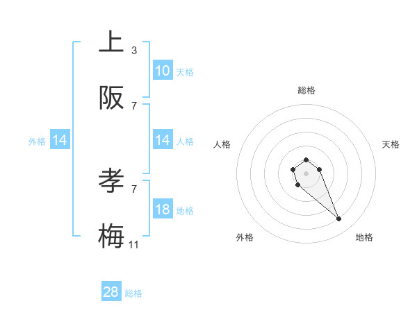 上阪 孝梅さんを姓名の画数から五運を鑑定