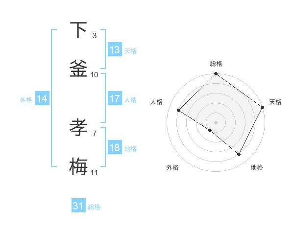 下釜 孝梅さんの総格は31画の5点!