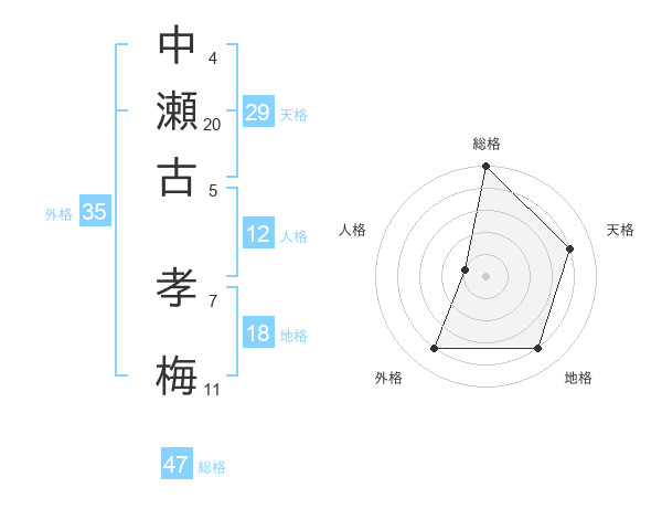 中瀬古 孝梅さんを姓名の画数から五運を鑑定