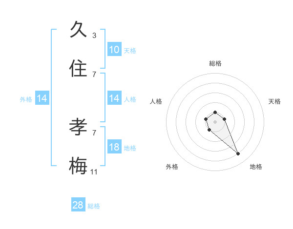 久住 孝梅さんを姓名の画数から五運を鑑定