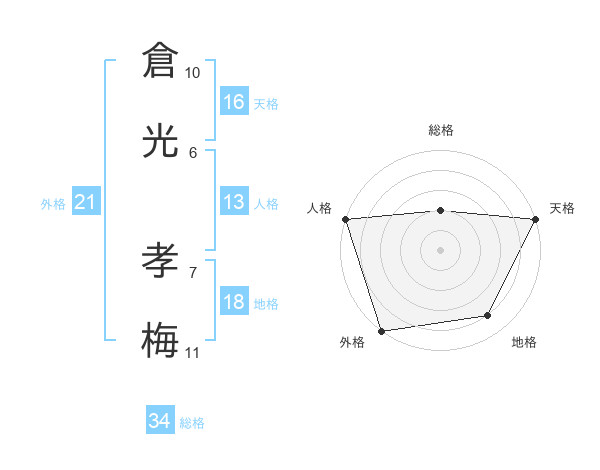 倉光 孝梅さんの天格は16画の5点!