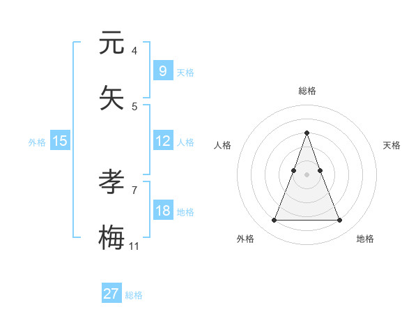 元矢 孝梅さんを姓名の画数から五運を鑑定