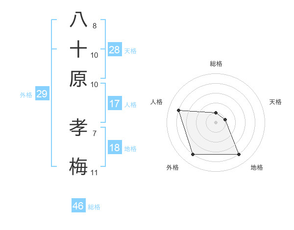 八十原 孝梅さんを姓名の画数から五運を鑑定