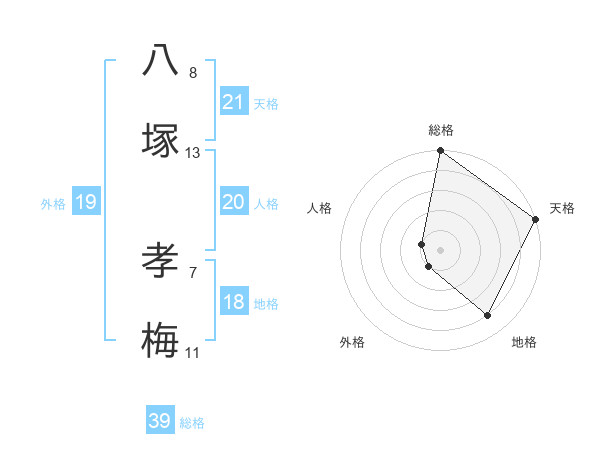 八塚 孝梅さんの天格は21画の5点!