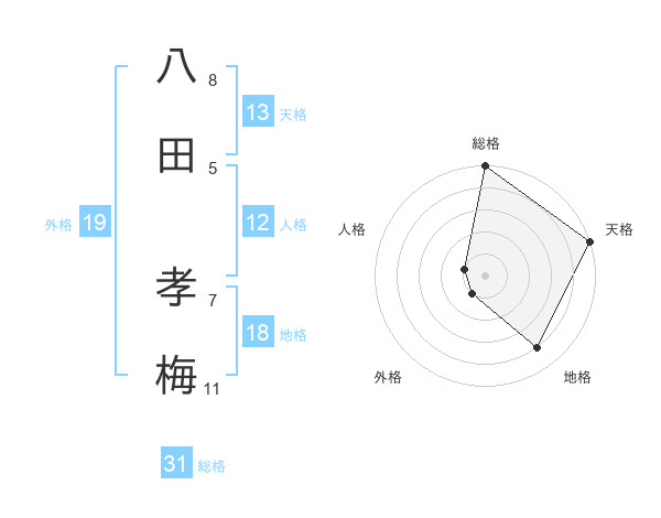八田 孝梅さんの総格は31画の5点!