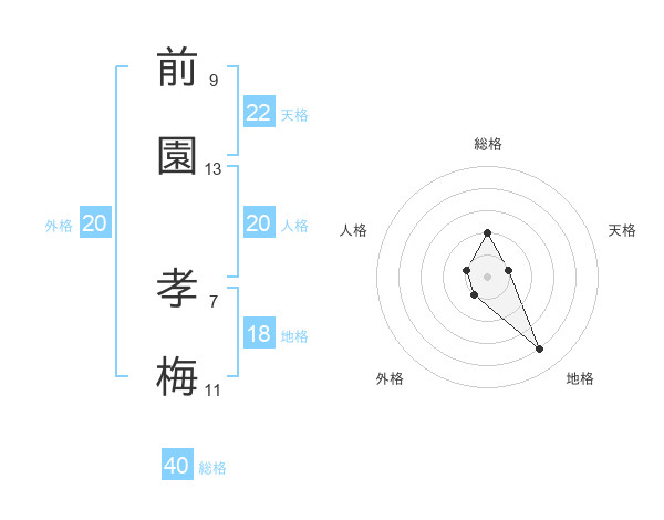 前園 孝梅さんを姓名の画数から五運を鑑定