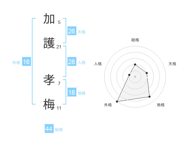 加護 孝梅さんを姓名の画数から五運を鑑定