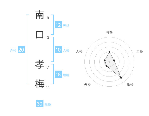 南口 孝梅さんを姓名の画数から五運を鑑定