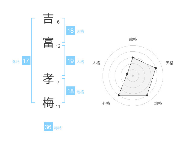吉富 孝梅さんを姓名の画数から五運を鑑定