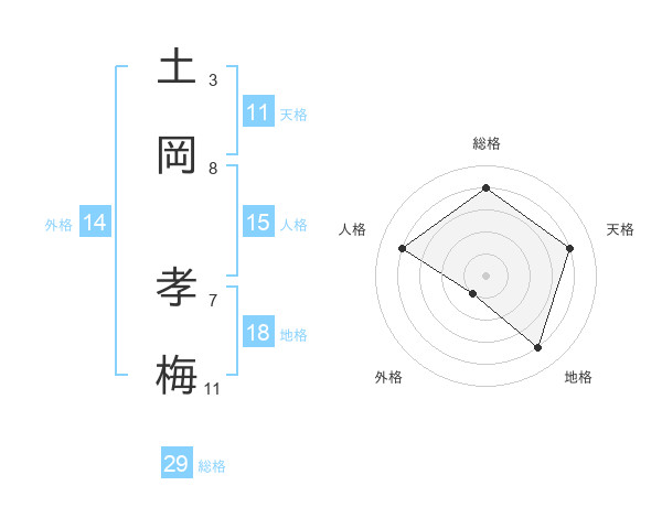 土岡 孝梅さんの総格は29画の4点!