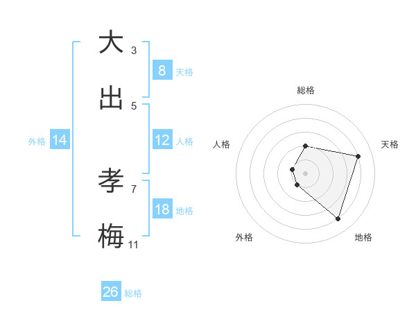 大出 孝梅さんを姓名の画数から五運を鑑定