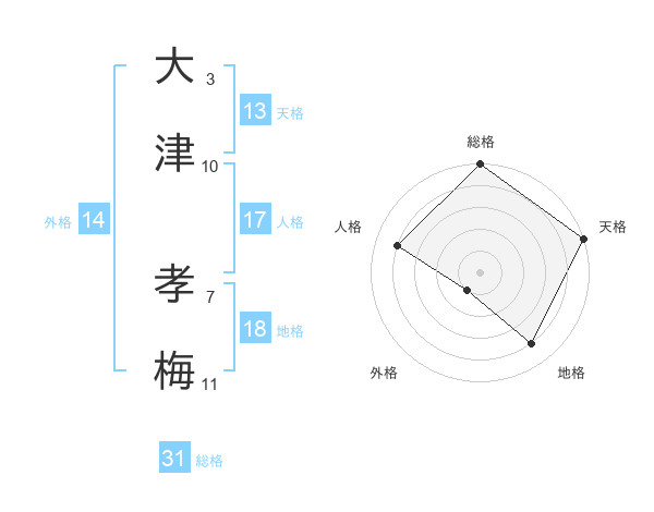 大津 孝梅さんの総格は31画の5点!
