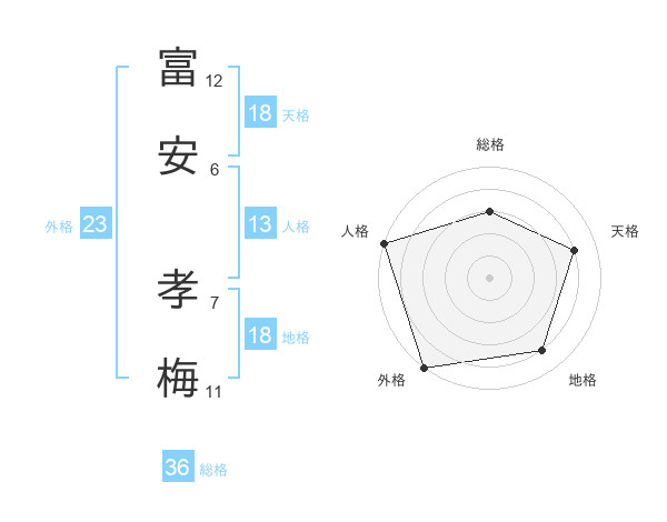 富安 孝梅さんを姓名の画数から五運を鑑定