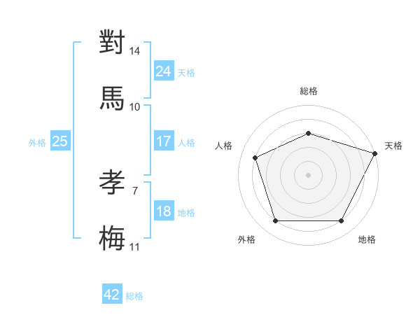 對馬 孝梅さんの天格は24画の5点!