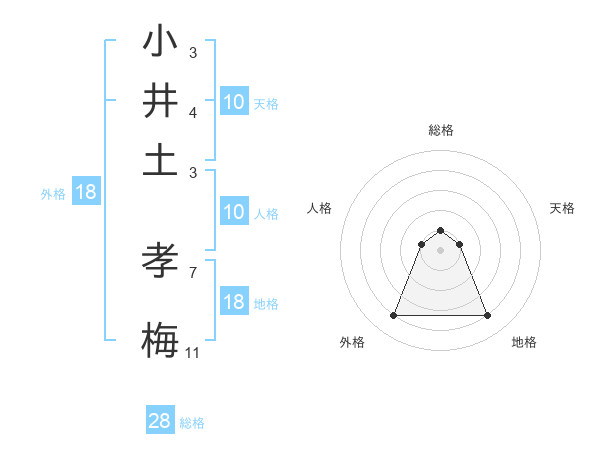小井土 孝梅さんの総格は28画の1点!