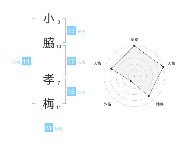 小脇 孝梅さんの総格は31画の5点!