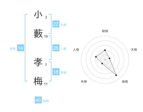 小藪 孝梅さんを姓名の画数から五運を鑑定