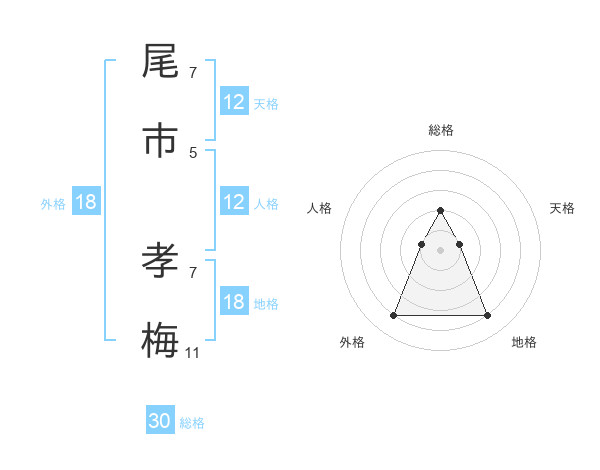 尾市 孝梅さんを姓名の画数から五運を鑑定