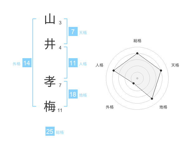 山井 孝梅さんの総格は25画の4点!