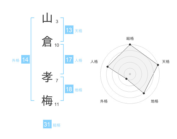 山倉 孝梅さんを姓名の画数から五運を鑑定