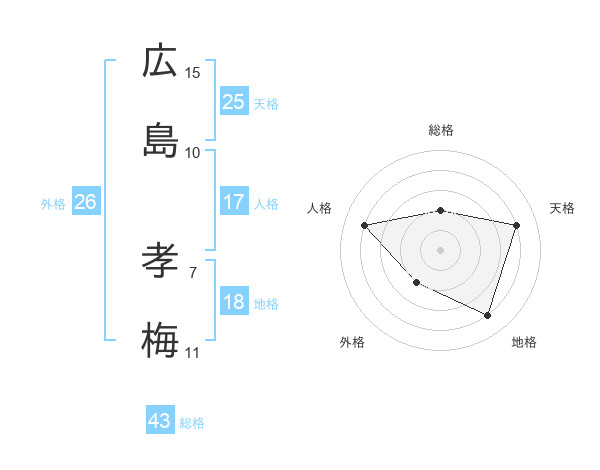 広島 孝梅さんを姓名の画数から五運を鑑定