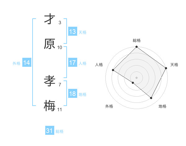 才原 孝梅さんを姓名の画数から五運を鑑定