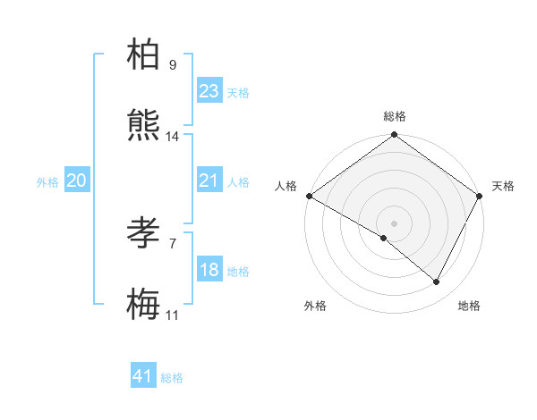 柏熊 孝梅さんの総格は41画の5点!