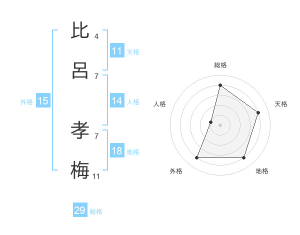 比呂 孝梅さんの総格は29画の4点!